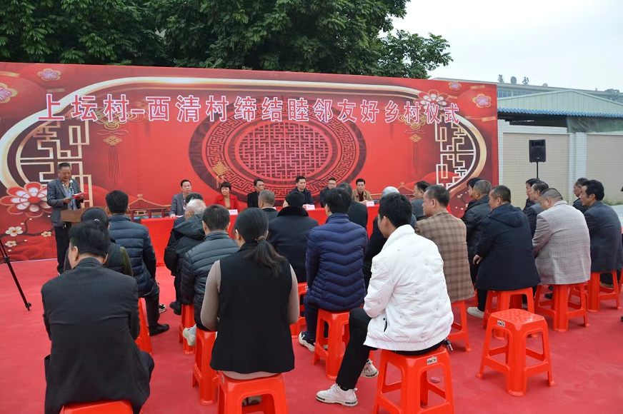 2023年12月28日上午,池尾街道上坛村、西清村举行缔结睦邻友好乡村仪式,在市委巡察组、街道领导、“两委”干部和乡贤的见证下,两村互赠“敦亲睦邻·和谐共进”锦旗,破除两村互不往来的陈规陋习,结为睦邻友好乡村,为两村共谋未来发展开辟更加广阔的空间。2023年11月,市委第六巡察组进驻池尾街道开展巡察监督,经开展谈话和实地走访了解到,西清村与上坛村是田畴相连、地界相隔的比邻乡村,但是多年来两个乡村因历史积怨,两村村民互不往来、不通婚约。据池尾街道反映,西清村与上坛村“互不往来”的旧俗代代相传,无从考证,随着近年来生活水平的显著提高,西清村与上坛村两村村民思想观念也发生较大变化,日常往来逐渐向好,但互不往来、不通婚约的旧俗或多或少给两村村民的生活和工作造成不便,一定程度也制约着两村的和谐发展。巡察组进驻后,为了消除两村的嫌隙积怨,促使两村重结友谊,多次进行走访、调研、协调,与西清村和上坛村“两委”干部、理事会和乡贤代表进行座谈交流,引导两村尽快打破芥蒂,重修友谊。街道党工委和巡察组还积极向两村的老年人宣传推进移风易俗、倡导文明乡风的重要意义,希望两村能摒弃陈规陋习,促进村民之间友善互助、和睦往来、加强沟通、共谋发展。