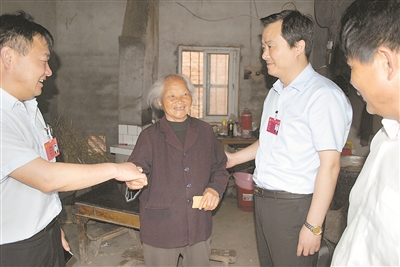 在龙集镇田集村走访时,村干部指着一处低矮的房屋告诉纪洪奎,里面住着两位70多岁的老人,是典型的“空巢家庭”,生活十分困难。看到这一场景,纪洪奎的眼睛湿润了,他当即决定将老两口作为自己的结对帮扶对象,个人出资为老两口安装了固定电话,并承担每月费用。此后,每次下乡到龙集镇以及逢年过节,纪洪奎总要登门看望老人,嘘寒问暖、送钱送物。“他这么忙还经常来看我们,就是亲儿女也很少这样的。”两位老人动情地说。